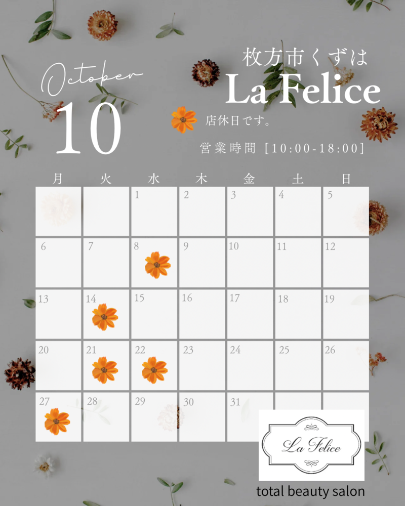 枚方市くずはのトータルビューティーサロン【La Felice】です🌿