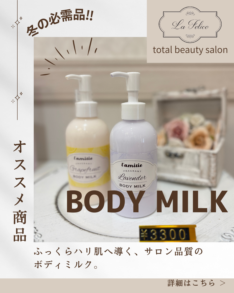 サロンで大人気の《l’amitie ボディミルク》をご紹介します🩷