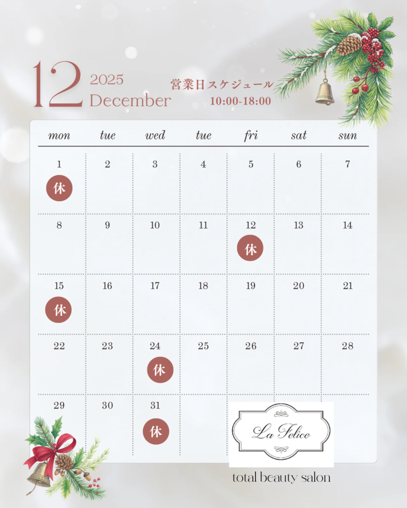 🎄12月の店休日スケジュールのお知らせ【La Felice】🎄